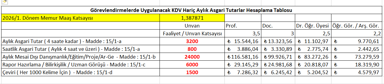 Trabzon Üniversitesi Döner Sermaye Gelirlerinden Yapılacak Ek Ödeme Dağıtım Usul ve Esasları 15'inci maddesi uyarınca asgari tutarlar aşağıda gösterilmiştir.